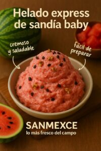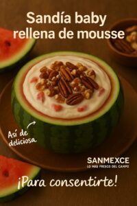 - Parte la sandía baby a la mitad y saca la pulpa con cuidado.